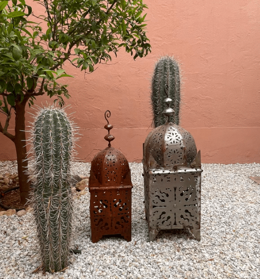 Breng de betoverende sfeer van Marrakech naar jouw huis of tuin met deze handgemaakte Marokkaanse lantaarn. Elke lantaarn is vervaardigd door lokale ambachtslieden en heeft een authentieke, onbewerkte afwerking die zorgt voor een verouderde en roestige uitstraling. Na verloop van tijd zal het metaal op natuurlijke wijze verder verouderen, wat de lantaarn alleen maar meer karakter geeft.