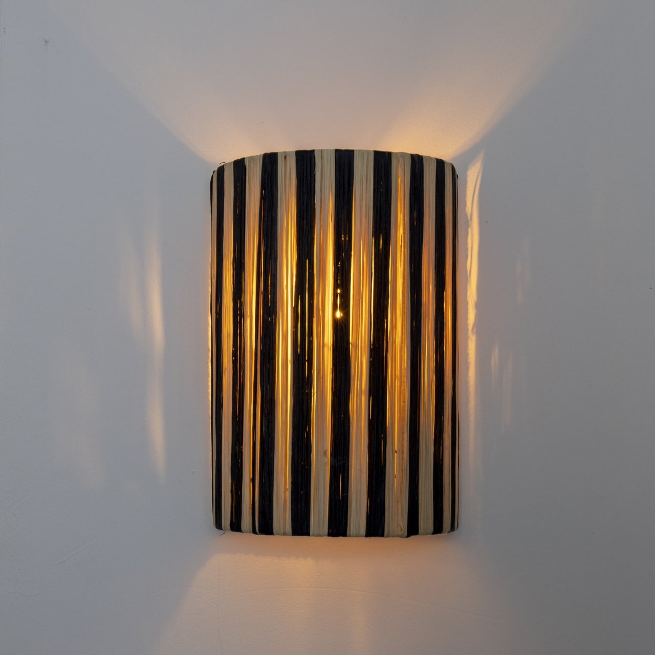 Wandlampenkap Raffia Zwarte strepen